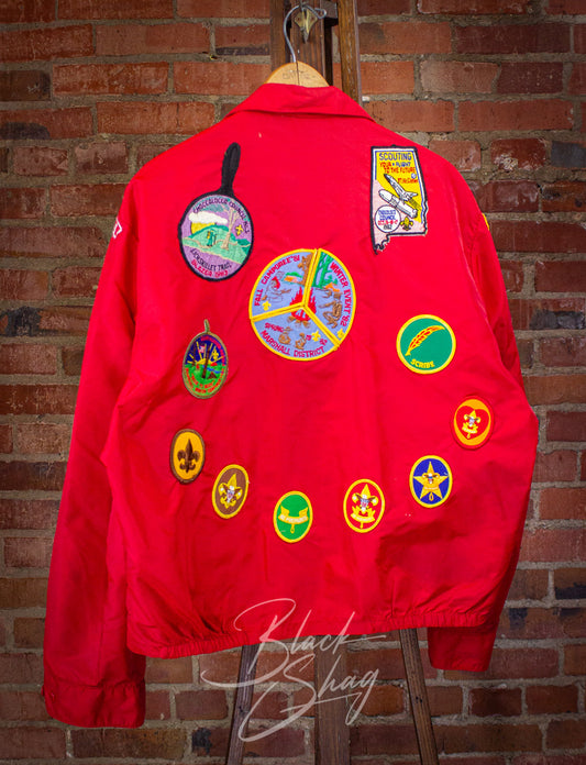 Vintage Red Patched Windbreaker Jacket 80s Large