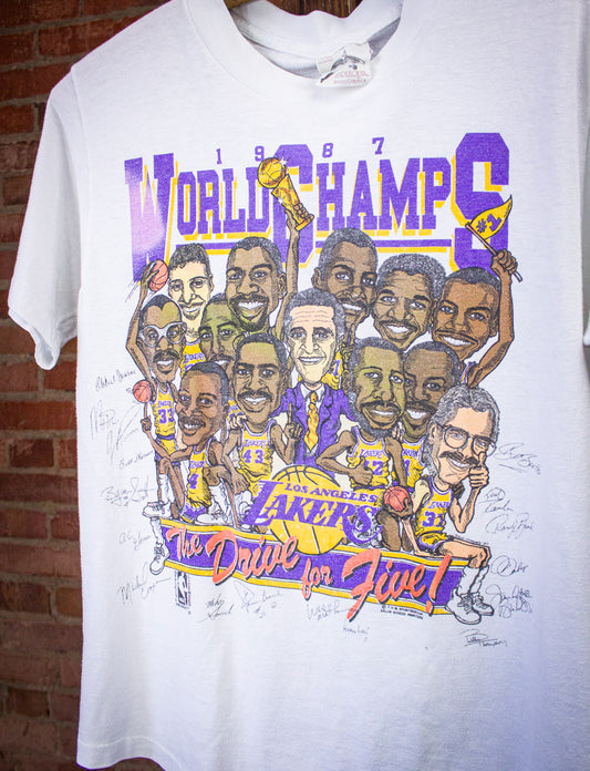 Vintage Los Angeles Lakers World Champs Graphic T Shirt 1987 White Medium