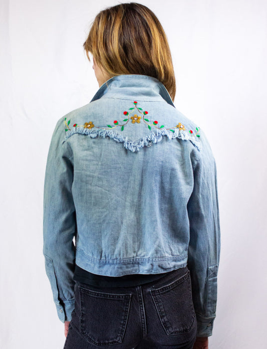 Vintage Denim Light Wash Crop Jacket 1970s Small