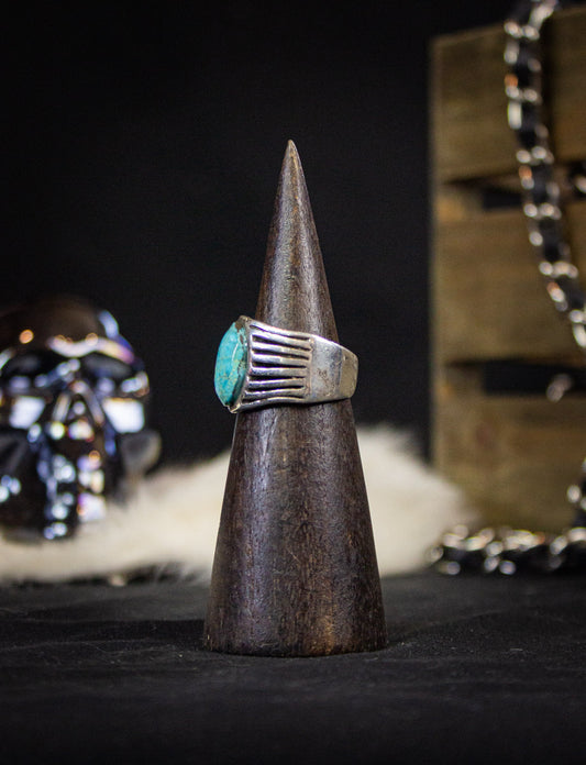 Vintage Sterling Silver Turquoise Ring With Grooved Band Size 11.5