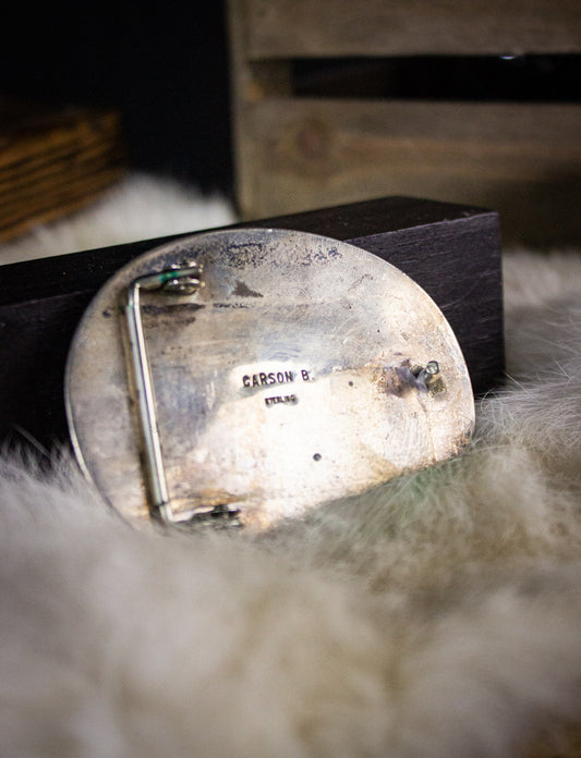Vintage Sterling Silver Turquoise Carson B Belt Buckle