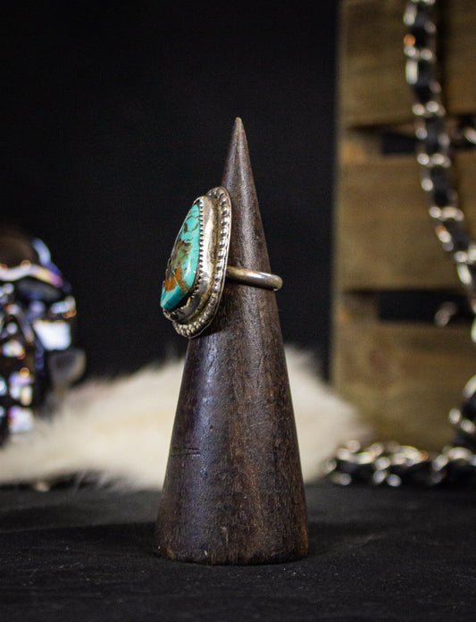 Vintage Sterling Silver Round Turquoise Ring Size 6.5