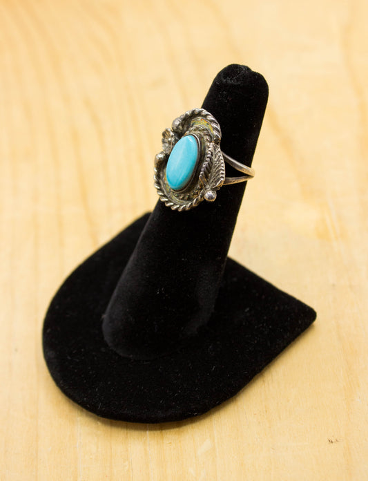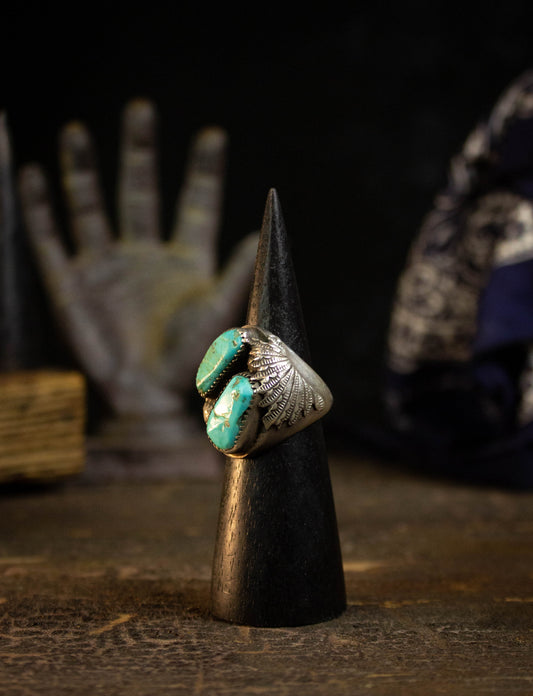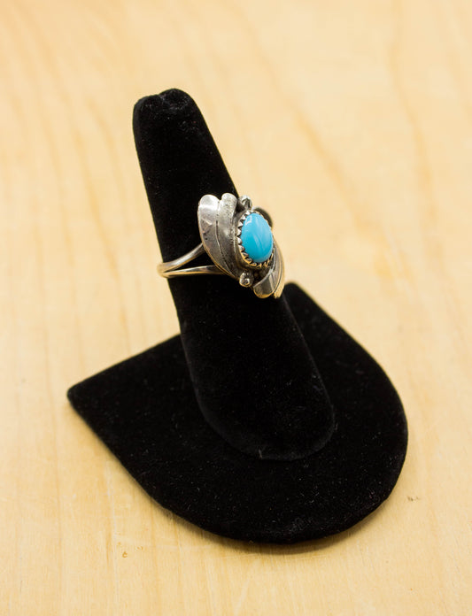 Vintage Sterling Silver and Turquoise Feather Ring Size 6 3/4