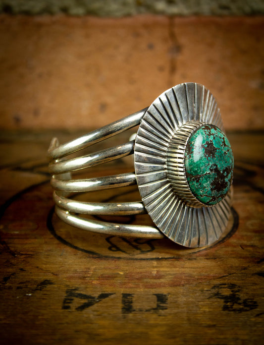 Vintage Silver and Turquoise Sunburst Cuff Bracelet