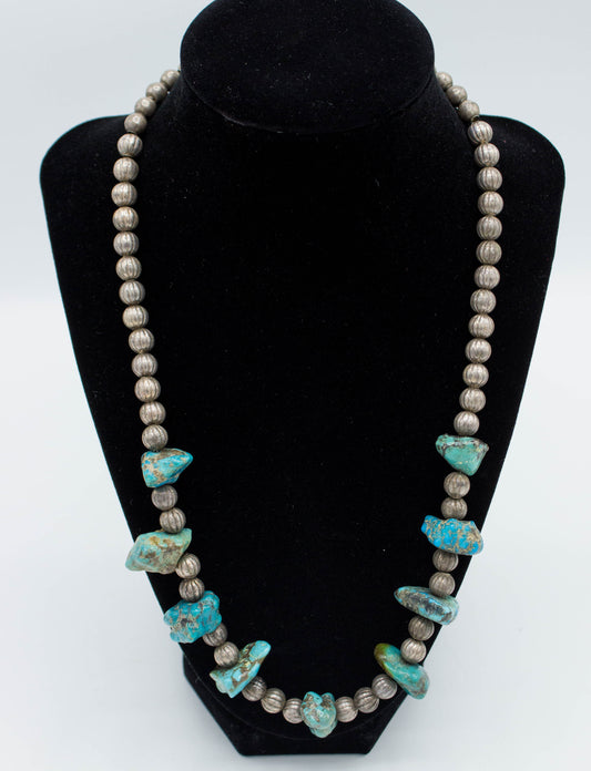 Vintage 60s Sterling Silver Pearls and Turquoise Nugget Necklace