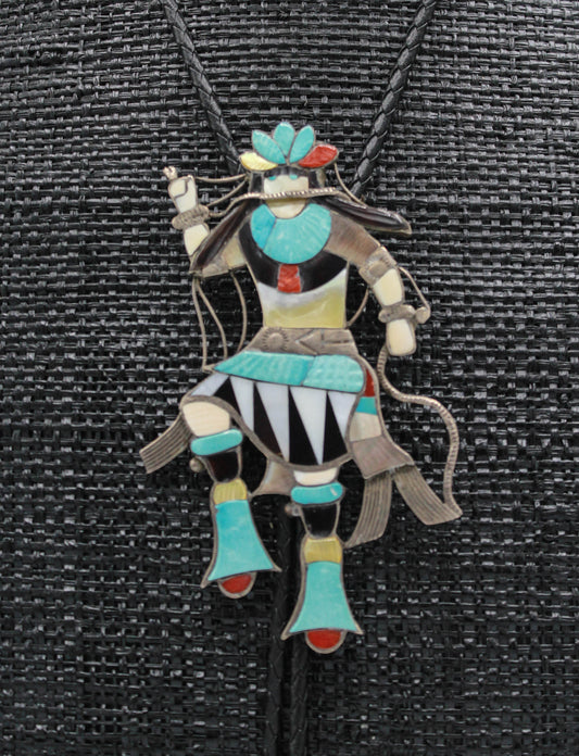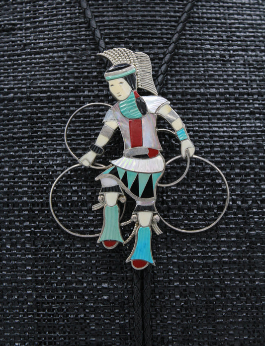Vintage Zuni Eddie Beyuka Sterling Silver Native American Hoop Dancer Bolo Tie