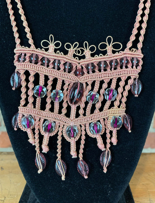 Vintage 70's Beaded Macrame Necklace