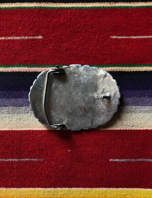 Vintage Silver Turquoise Red Coral Snake Belt Buckle