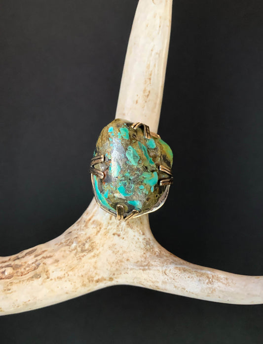 Vintage Sterling Silver And 18K Gold Raw Turquoise Ring - Size 5