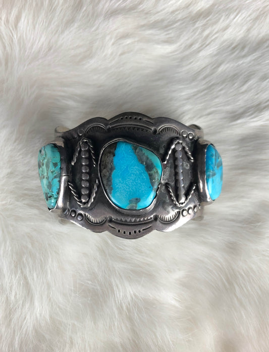 Vintage Sterling Silver Triple Turquoise Cuff Bracelet