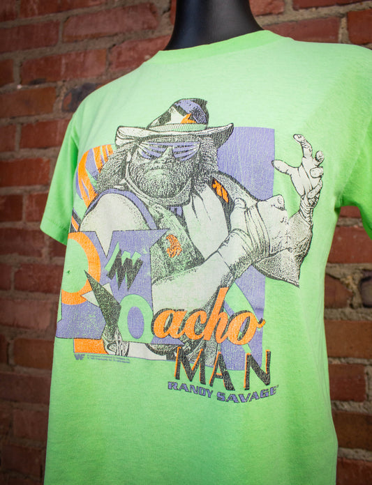 Vintage WWF Macho Man Randy Savage Graphic T Shirt 1991 Neon Green XS