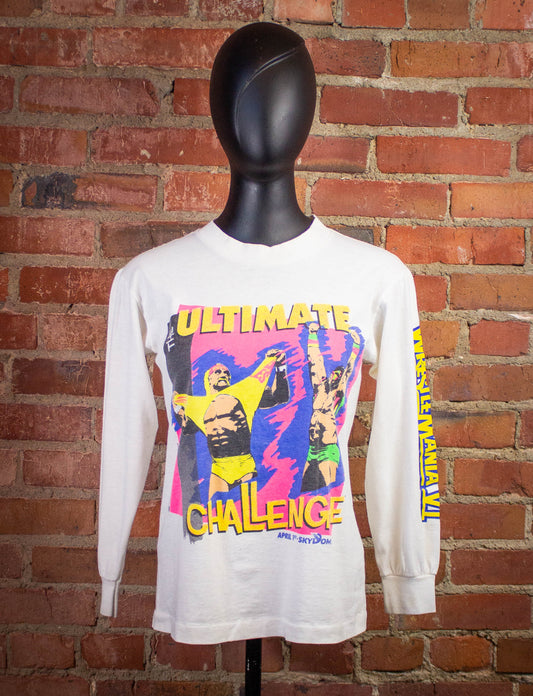 Vintage WWF Wrestlemania Ultimate Challenge Long Sleeve Graphic T Shirt 1990 White XS