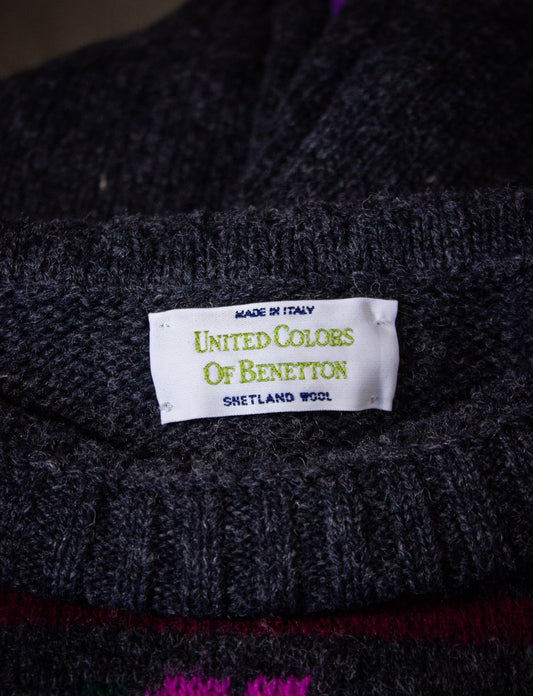 Vintage Wool Benetton Sweater 1980s Grey Medium