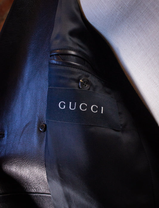 Vintage Gucci Double Breasted Black Leather Coat Tom Ford Era Y2K 40