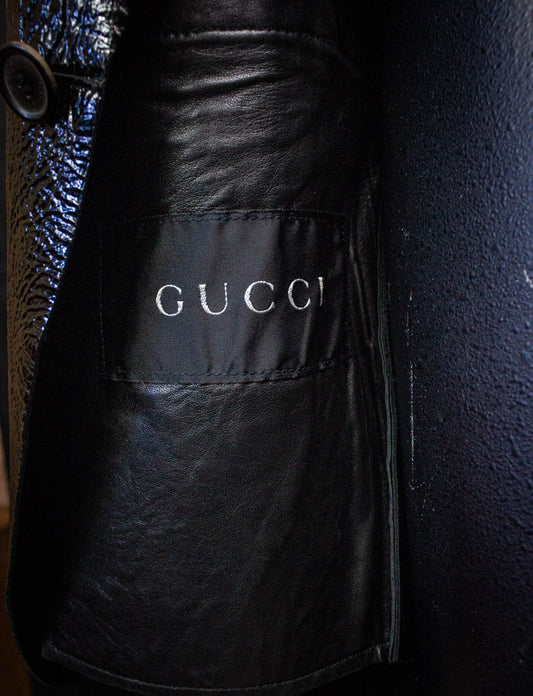 Vintage Gucci Vernice Black Leather Blazer y2k Large
