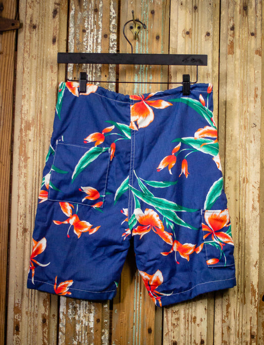 Vintage Beach Breakers Blue Floral Board Shorts 80s Small