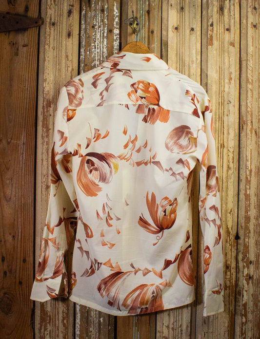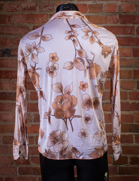 Vintage Floral Pattern Button Up Disco Shirt Pink Medium