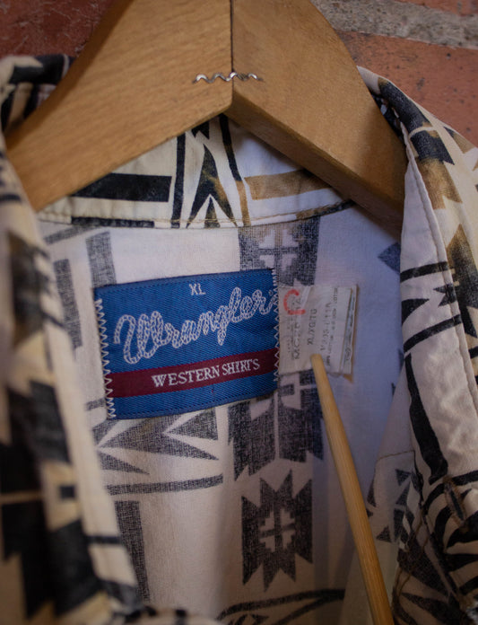 Vintage Wrangler Aztec Pattern Pearl Snap Button Up Western Shirt White and Blue XL
