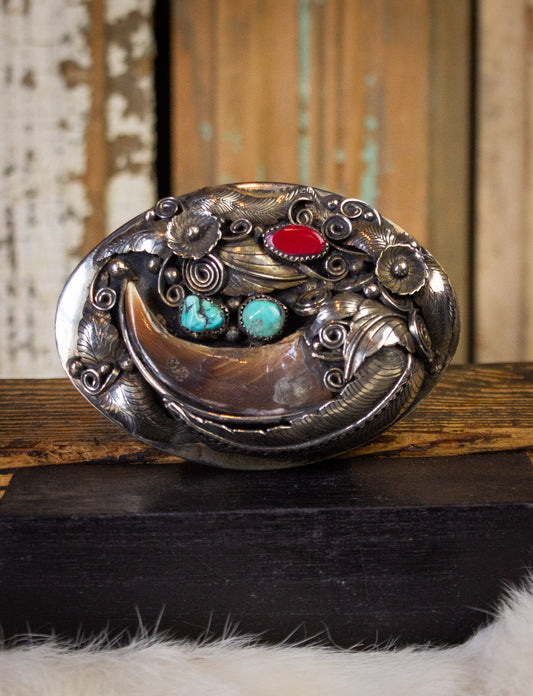 Vintage Claw Turquoise Coral Sterling Silver Belt Buckle