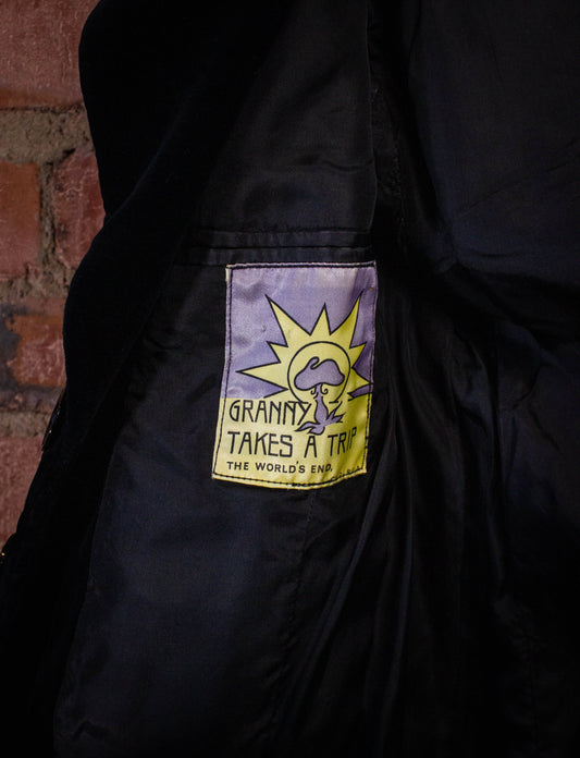 Vintage 70s Granny Takes A Trip Black and Red Velvet Suit Small