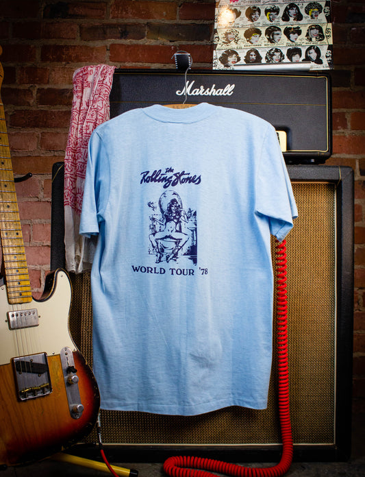 Vintage Rolling Stones World Tour Concert Pocket T Shirt 1978 Light Blue Medium
