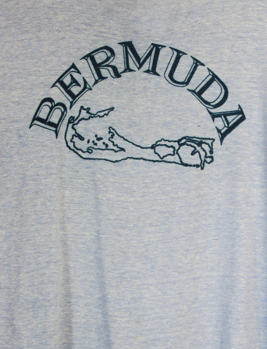 Vintage 70s Bermuda Graphic T Shirt Souvenir Ringer Blue Small