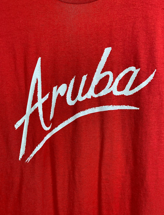 Vintage 80s Aruba Graphic T Shirt Souvenir Vacation Red S/M