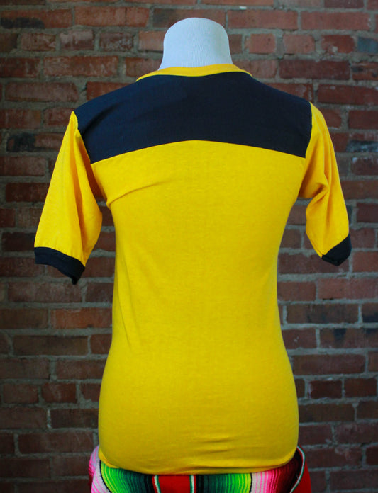 Vintage 80's Rick Springfield Graphic T Shirt Ringer Tee Dead Stock Iron On Transfer Yellow Unisex Small/XS