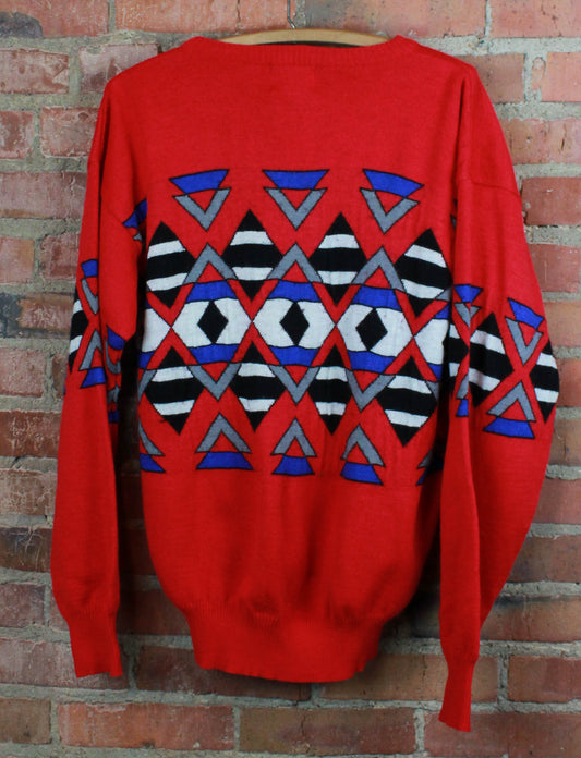 Vintage 80's Tyrolia Sweater Aztec Wool Pullover Crew Neck Red Unisex Small/Medium