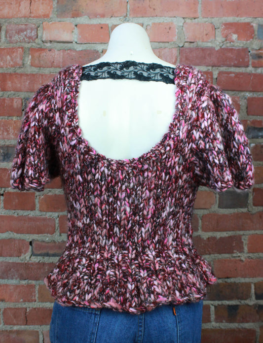 Women's Vintage 90's Betsey Johnson Sweater Scoop Neck Peplum Short Sleeve Knit Wool Blend Multicolor Medium/Large