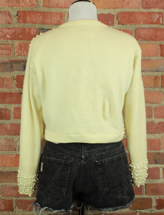 Women's Vintage White Pearl Beaded Cardigan Sweater - Medium