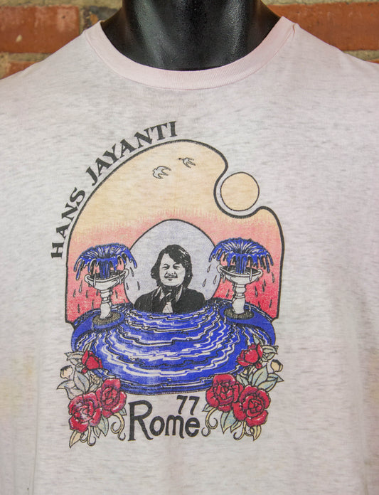 Vintage 1977 Hans Jayanti Rome Pink Guru Event Graphic T Shirt Medium