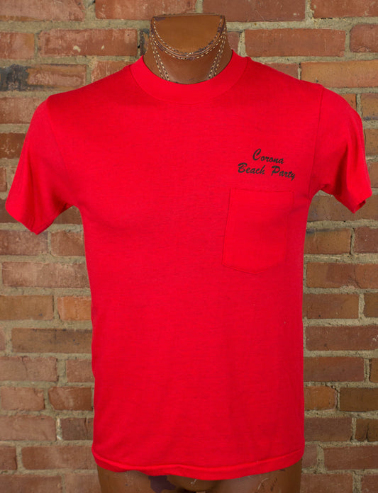 Vintage 80s Corona Beach Party Member Puff Print Red Pocket Tee Graphic T Shirt Medium