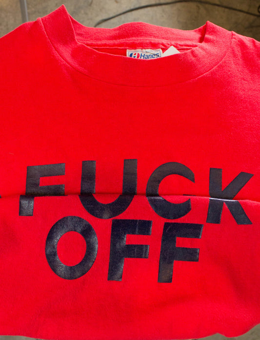 Vintage 80s EIIGY POCR OFF Fuck Off Red Graphic T Shirt Unisex Large-XL