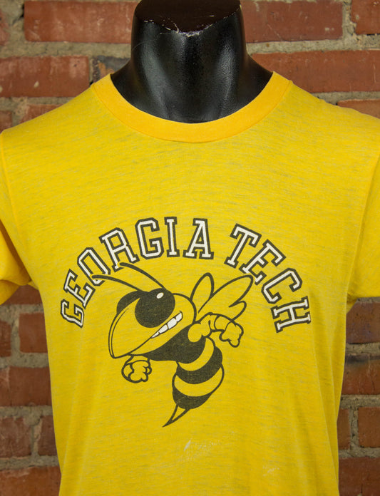 Vintage 80s Georgia Tech Hornets Yellow Graphic T Shirt Medium