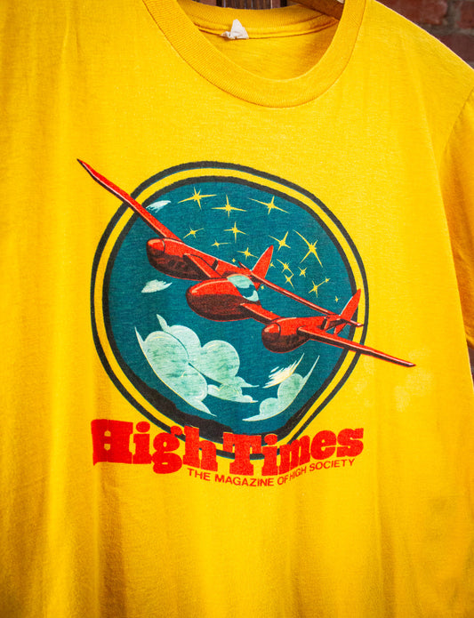 Vintage High Times Magazine Graphic T Shirt 70s Yellow Small