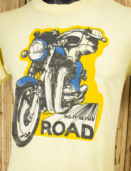 Vintage Do It In The Road Motorcycle Graphic T Shirt 70s Yellow Small