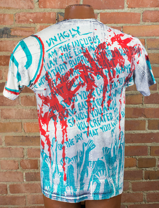 Kiss 1992 Revenge Tour Unholy Aqua Blue and Red All Over Print Concert T Shirt Medium-Large