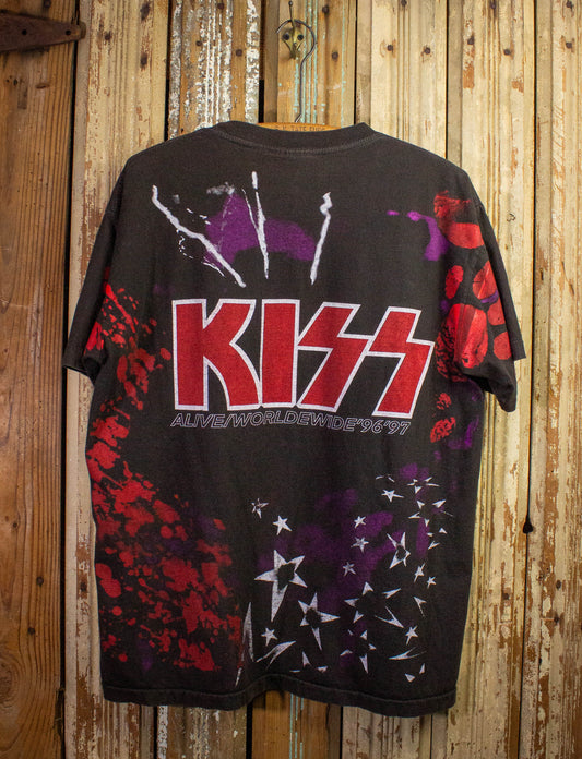 Vintage KISS Alive Worldwide All Over Print Concert T Shirt 1996-97 Black XL