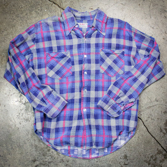 Vintage Val Mark Plaid Flannel Shirt Blue Medium