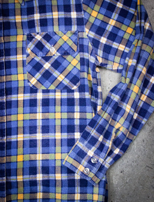 Vintage Kennington Blue and Yellow Plaid Flannel Shirt 70s Medium