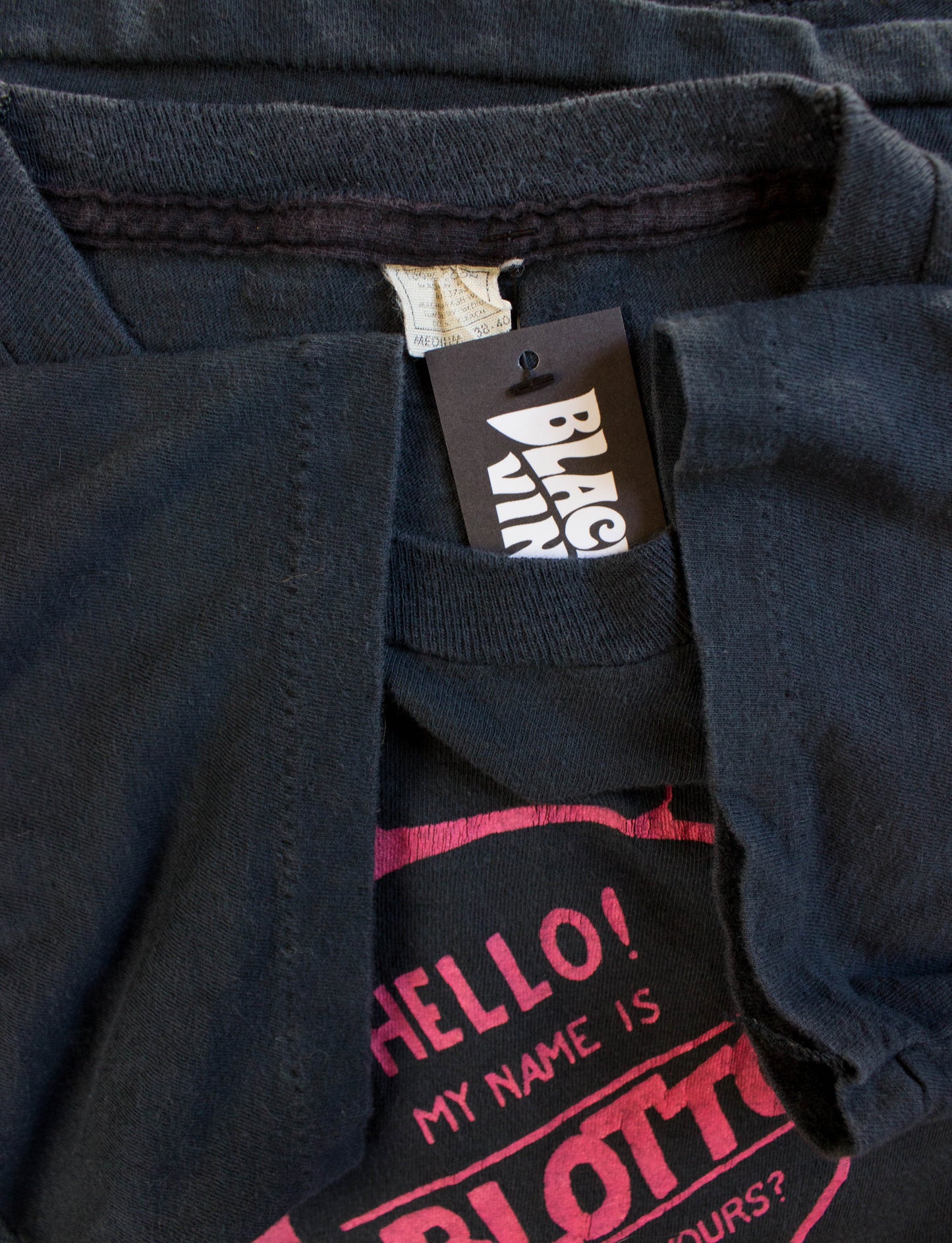 Vintage 1979 Hello! My Name is Blotto faded black and pink concert t shirt. Blotto was a band in the late 70s that blended rock music and humor! Unisex. Tagged a Medium, fits a Small. 100% cotton, single stitch. Great condition, light wear and fading throughout. Super rare to find any of their tees!