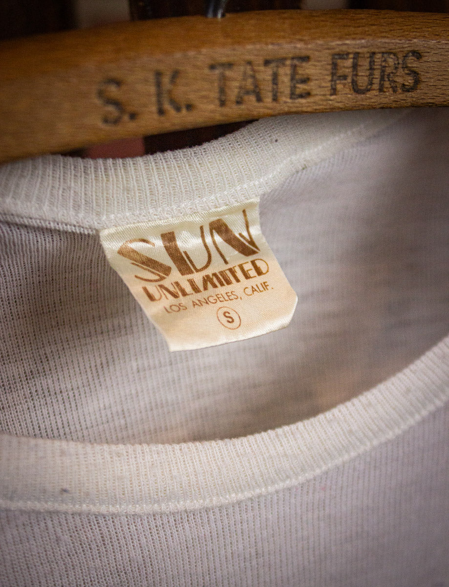 Vintage Alice Cooper Goes to Hell concert t shirt from 1976. One of the coolest promo tees we've ever seen! Features the Alice staircase artwork from the back of his 2nd solo album "Goes to Hell". That print combined with the red gradient is so killer! Also has a Warner Bros sleeve hit on the right sleeve. Unisex. Single stitch. Tagged small, fits an XXS. Excellent vintage condition, no flaws to note.