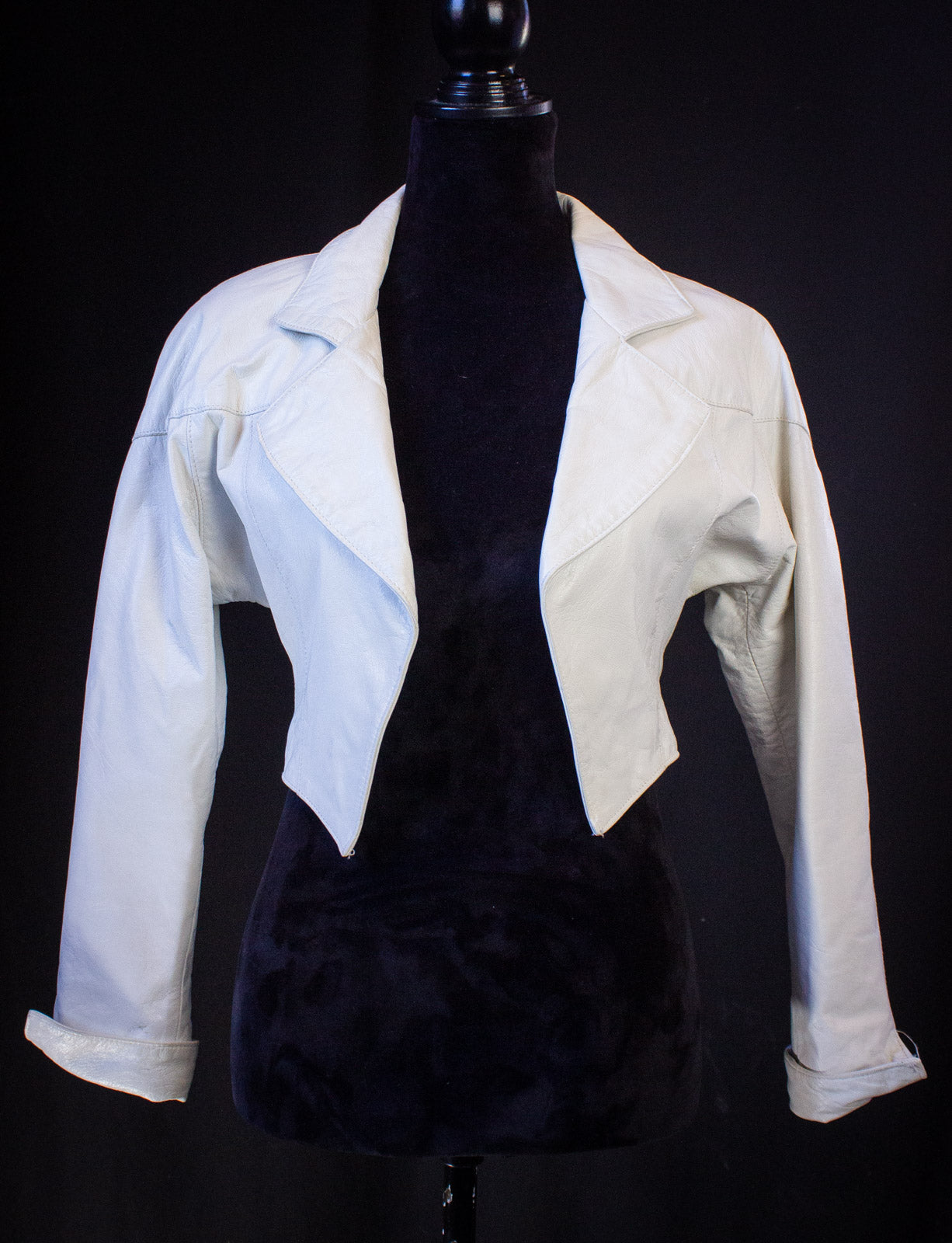 Vintage 1980s Dangerous Threads cropped leather jacket. This brand was wildly popular in the 80s and its pieces are becoming increasingly popular and sought after. Unisex. Genuine leather. Made in the USA. Good vintage condition, small stain near back collar (see photos)