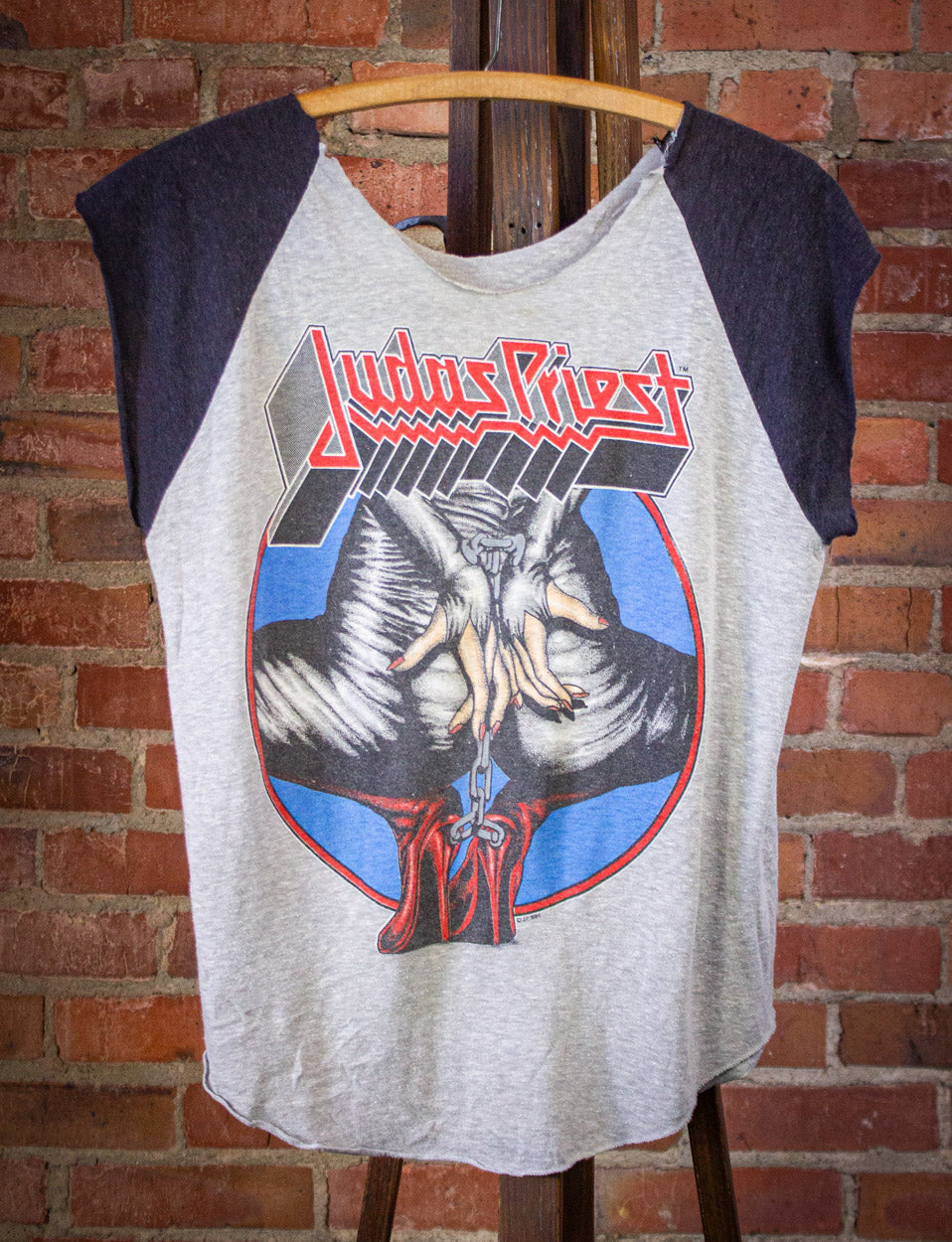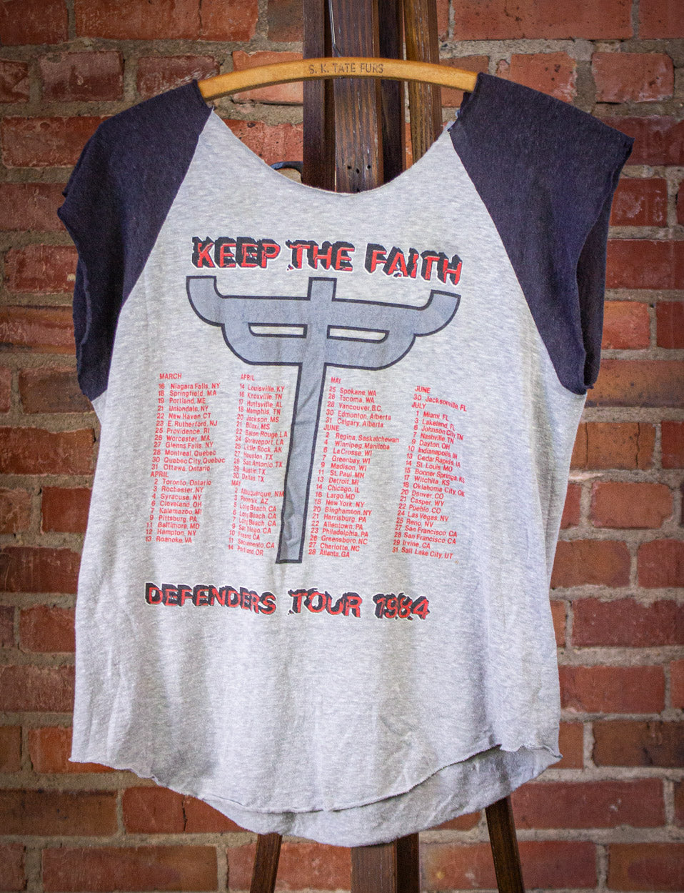 Vintage Judas Priest Defenders Tour Cut Off Concert T Shirt 1984 Gray/Black Medium