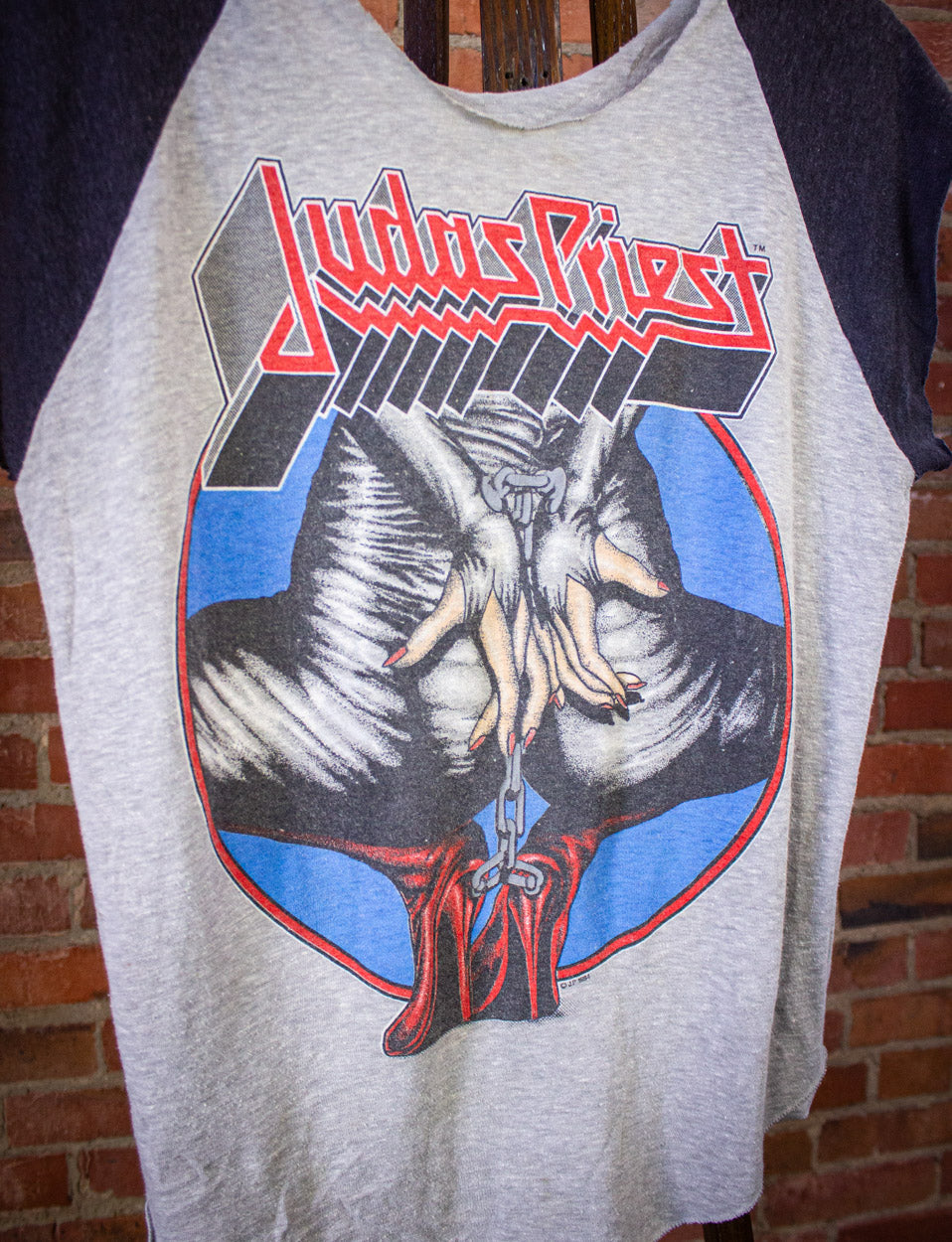 Vintage Judas Priest concert t shirt from 1984 Defenders tour. Cut off raglan tee with an insane print on the front and the list of tour dates on the back. Unisex. No tag, fits a medium with a cropped fit. Great vintage condition, no flaws to note!