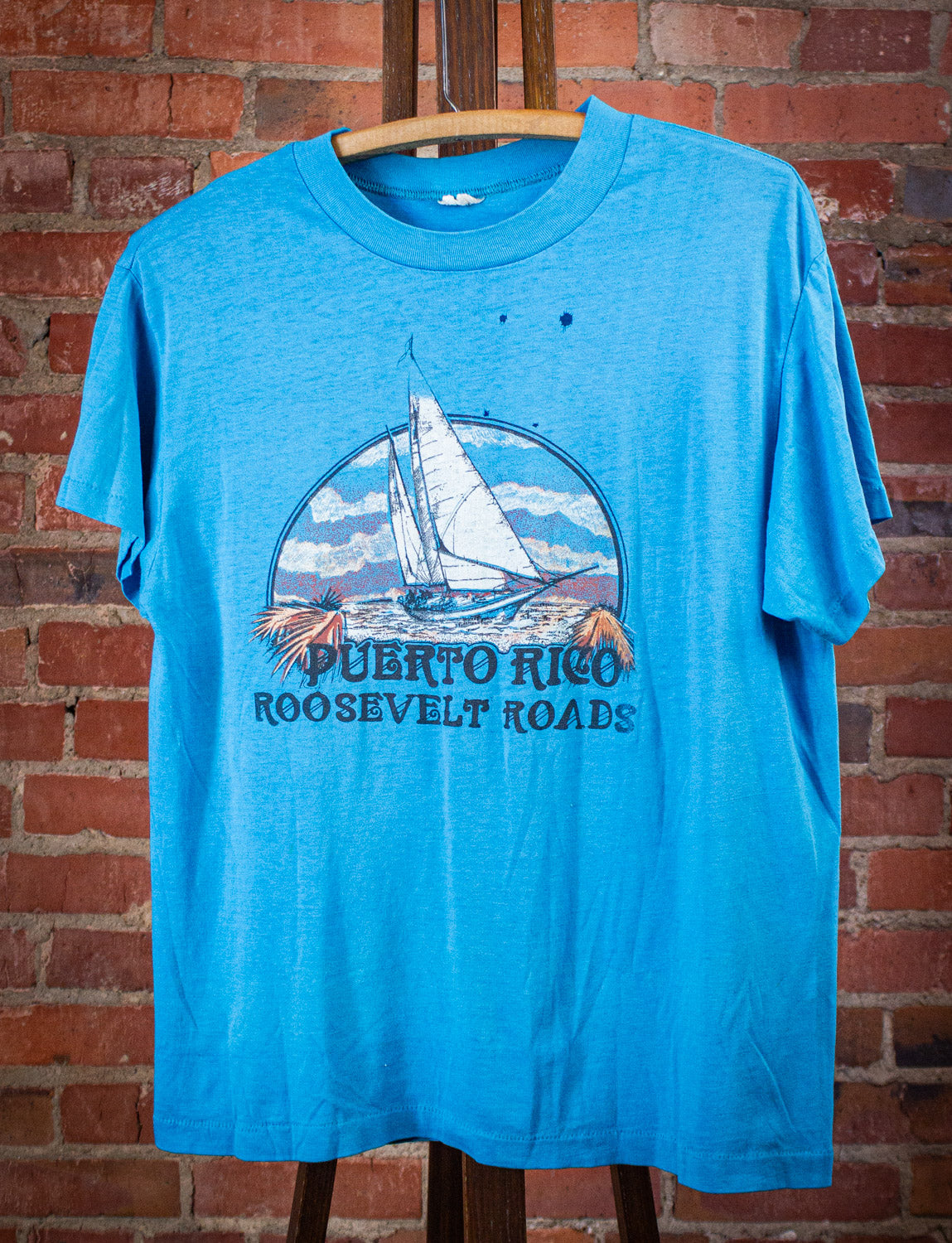 Vintage Puerto Rico Roosevelt Road Souvenir Graphic T Shirt 80s Blue Medium