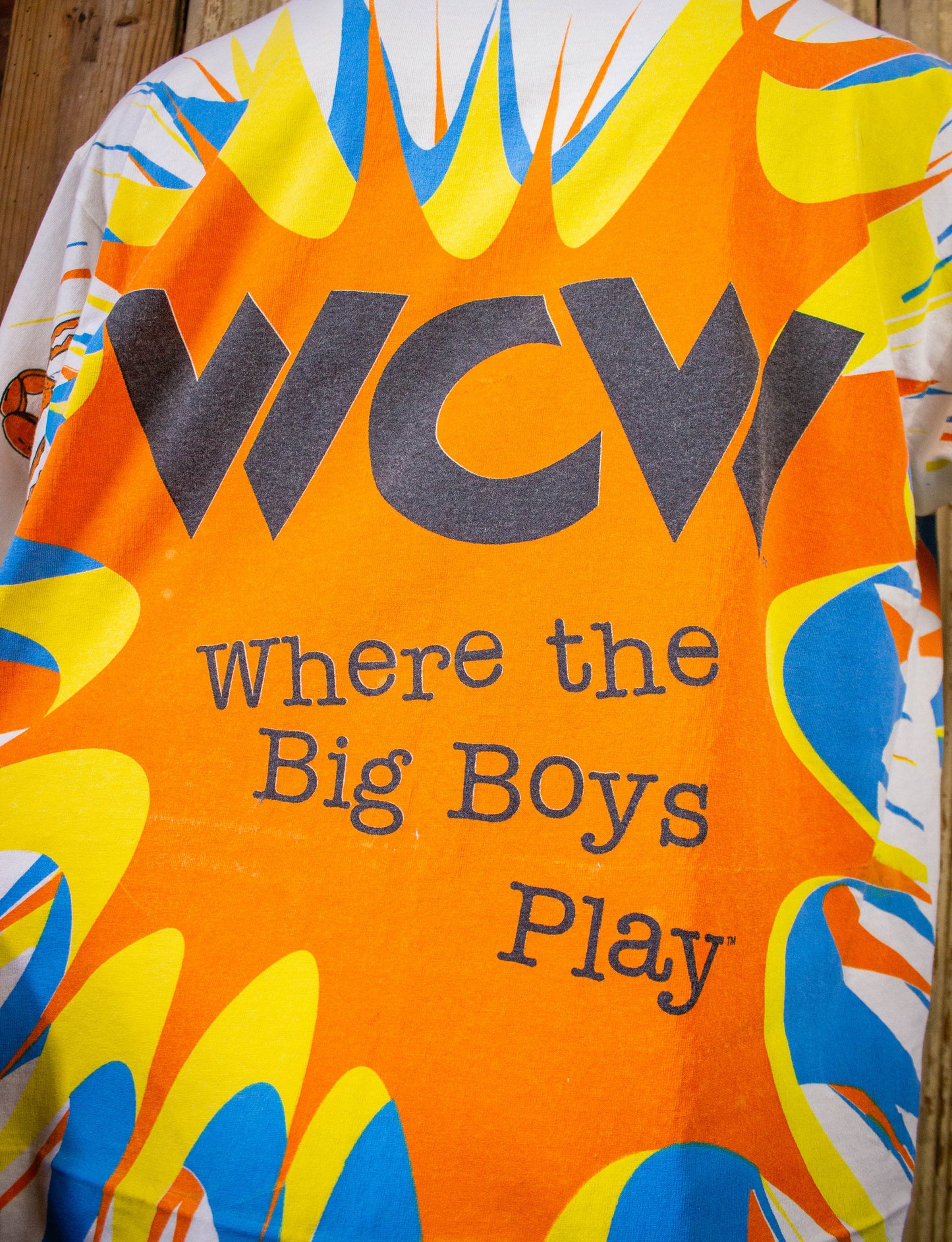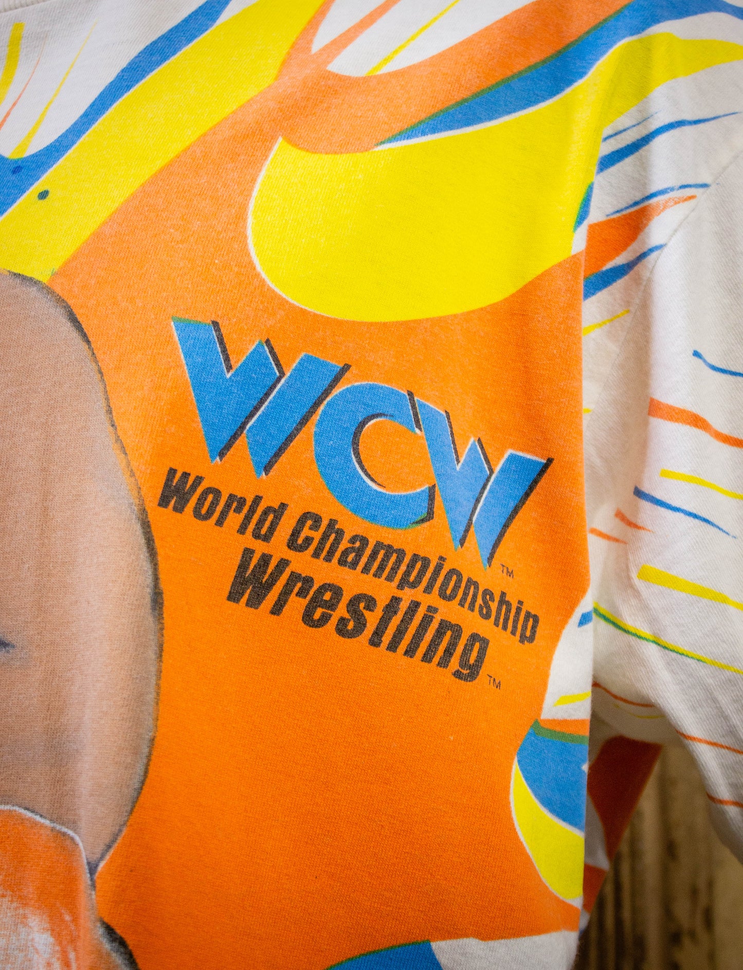Badass vintage World Championship Wrestling graphic t shirt from the 90s. Such an insane all over print design with Sting! The colors are amazing! Unisex. 100% cotton. Tagged XL, fits true to size. Great vintage condition, only flaw to note is some light staining on the shoulders (see photos).