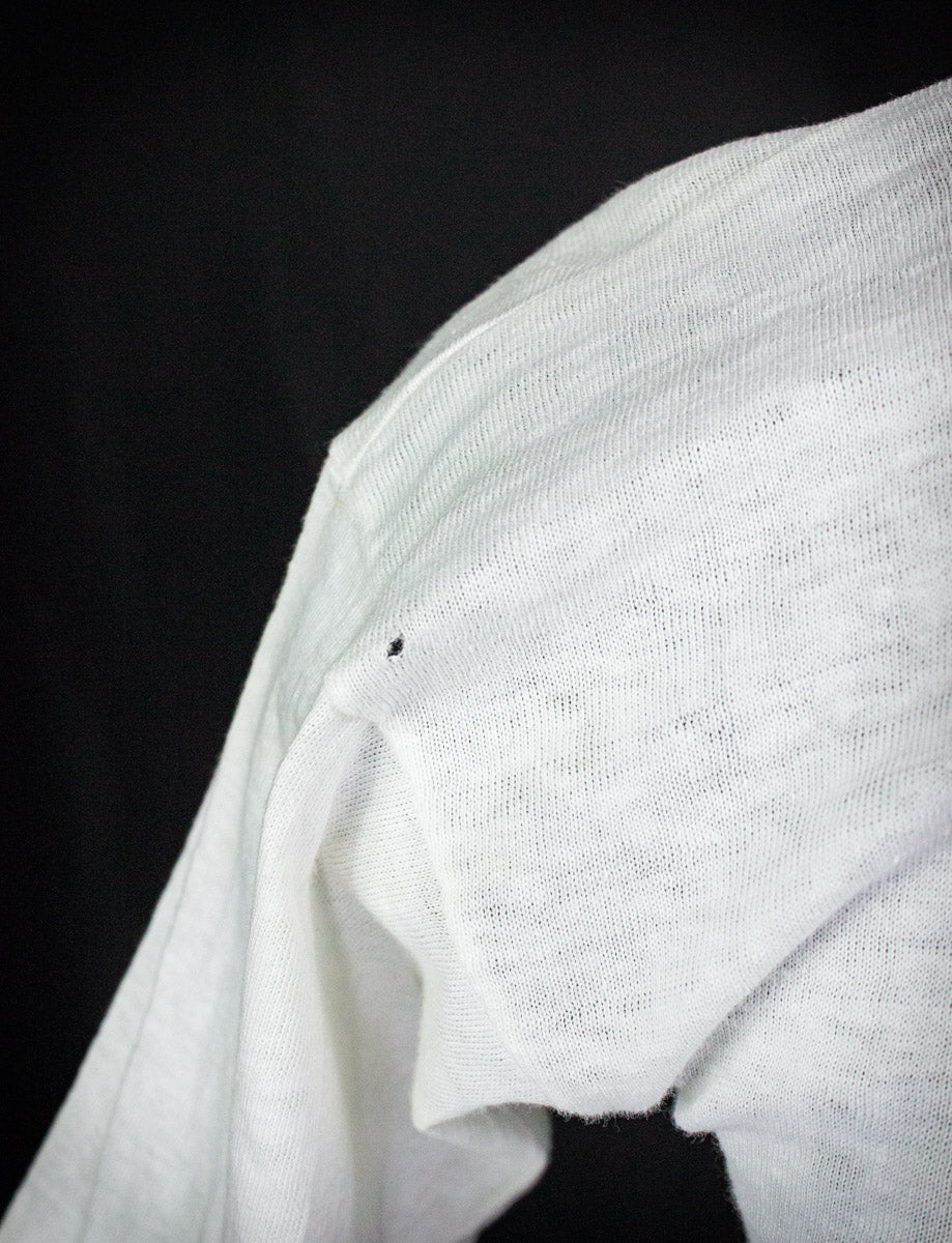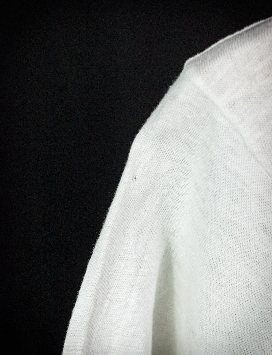 Vintage Yoko Ono Fly promo t shirt from 1971. Incredibly rare tee was made to promote Yoko's double album released on the Beatles' Apple record label. The shirt simply features a black and white graphic of Yoko's face with the album title “fly” printed above and “yoko ono” below, mirroring the album’s minimalist, avant-garde aesthetic. Unisex, 100% cotton, single stitch. Tagged a medium, fits like an XS. Great vintage condition, has a few very small holes on the sleeves and some very light staining on the bottom half of the front (see photos).