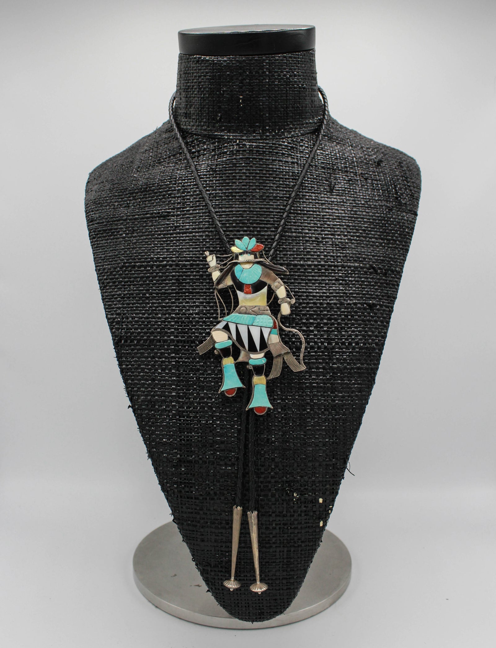 Vintage Zuni Eddie Beyuka Sterling Silver Native American Snake Charmer Bolo Tie